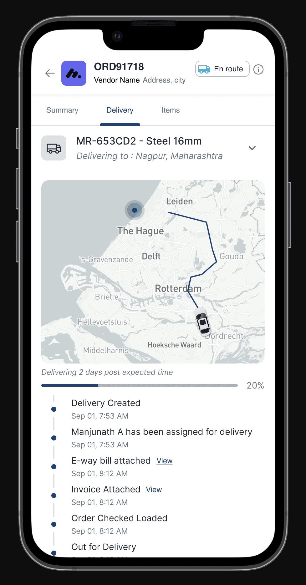 Real-time delivery tracking integrated directly into the commerce flow to reduce coordination gaps between sales and fulfilment.